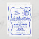 Squiggle Hand-Drawn Modern Doodle Blue Wedding Invitation
