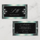 Squiggled Black and Teal Sparkle Diamonds Monogram Business Card