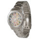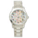 This women's watch has a mid-century modern design of squiggles running vertically in retro colours with black starbursts and circles scattered about the design.