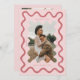 Whimsical and quirky wedding thank you card featuring a hand drawn wavy line around your photo. Pink.