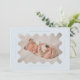 Whimsical and sweet birth announcement card featuring hand drawn photo frame of squiggly wavy line in blue.