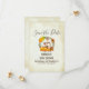 Save the date card for a birthday or baby shower. With a cute chipmunk standing behind some orange watercolor pumpkins. A foliage wreath surrounds them with an oak leaf and orange flowers and other sprigs and leaves. Background is a vintage parchment digital image (the paper is not actual parchment).