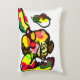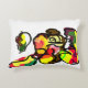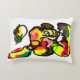 The cushion is small to medium sized. It can be washed. It is well constructed. The material used is pleasant and feels decent quality. It has a very slight plush feel which is good. It is well labelled and its care clearly stated. Theres nothing not to like about it. All in all a good item. The deduction of one star overall is due to long delays in delivery to the UK. It's not clear if this was due to Zazzle or somewhere else in the chain as I did not receive status updates of dispatch or progress. I cannot comment anymore on that other than to say that was our experience but it may not be the same for you. The printing was surprisingly close to what we were expecting. Its an art piece and on material so its hard to assess the precision of printing but it seems close to the original. The soft lines are reproductions of the original. The colour is a fair reflection of the painting. This was printed in the US and it looks like US quality. No issues.