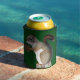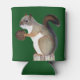 A colour pencil drawing of a happy squirrel with a walnut adorns this can cooler!