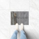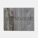 A doormat featuring a photo of a squirrel climbing up a tree.