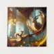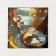 A tiny squirrel stands on a tree branch, peering into a mirror hanging from the bark. In the reflection, a regal stag with towering antlers stares back, embodying grace and strength. Surrounded by golden autumn leaves swirling in the air, the squirrel gazes with ambition and wonder, imagining a grand future in this magical forest scene.