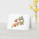 Original art card of a watercolor featuring a silly squirrel enjoying the Autumn season with a cup of hot cider in his apple tree. Quirky and fun, this card is sure to bring a smile to anyone!