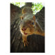 Closeup of Squirrel hanging upside down from tree staring into camera.