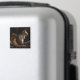 This magnet features a moment out of time. A beautiful red squirrel is sitting on a branch in a patch of sunlight in front of the dark textured bark of a wild cherry tree.