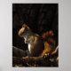 This poster features a moment out of time. A beautiful red squirrel is sitting on a branch in a patch of sunlight in front of the dark textured bark of a wild cherry tree.