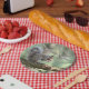 This paper plate features a squirrel eating his lunch in the woods of Connecticut.