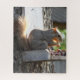 A jigsaw puzzle featuring a photo of squirrel on a feeder eating a nut.