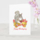 Wish a Happy Thanksgiving to friends and family or just send an Autumn card with this adorable watercolor original featuring a sweet grey squirrel holding a tiny pecan pie (his favourite!) and sitting in a pile of Fall coloured leaves.