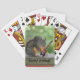 A deck of playing cards with a photo of a squirrel playing a hot red electric guitar. The squirrel is standing on a wooden deck outside with a background of green trees. The text reads "Party Animal" but you can personalise your deck of cards with your own saying or delete the text completely. This is a fun card deck that would be perfect for guitar players or any other musicians or band members...or maybe someone who just loves crazy musical squirrels!