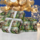A squirrel stands in a sunlit forest, wearing a festive party hat while holding a birthday card