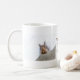 Closeup front view of a squirel with a walnut in its forepaws, looking straight at you. Funny and curious animal. Squirrel symbolises practicality, the necessity to make pleriminary provisions. Coffee mug. You can change or delete the image and the template text.