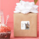 Closeup front view of a squirel with a walnut in its forepaws, looking straight at you. Funny and curious animal. Squirrel symbolises practicality, the necessity to make pleriminary provisions. Square sticker. You can change or delete the image and the template text.