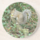 This pretty sandstone coaster features a photograph of a cute fluffy grey squirrel clutching an acorn and sitting in a tree in the forest.