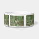 This awesome pet bowl features a photograph of a cute fluffy grey squirrel clutching an acorn and sitting in a tree in the forest.