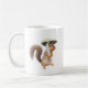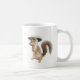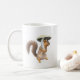 A squirrel holds a mushroom like an umbrella on this cute mug.