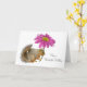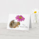 A squirrel holding up a big pink flower. Customise this birthday card.