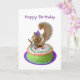 A squirrel holds sword ready to cut into the birthday cake. Fun for card a birthday, congratulations or any happy celebration. "Happy Birthday" or customise to write your own words.