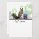 A squirrel poses between two brightly-wrapped presents in this original photograph.