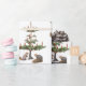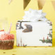 Two squirrels sit under a Christmas tree decorated with flickering red candles on this vintage style wrapping paper.