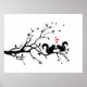 Squrrels with acorn and red hearts on tree branch, greeting card illustration for Valentine's day or birthday. Art illustration, vector drawing