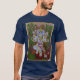 I give wanted to give this a 4 instead of a 5 because these Basic DARK T0shirts run unexpectedly SLIM or Narrow. Which is great if you do not have a potbelly, but I have a paunch. It isn't the shirt's fault that I've got a beer belly. The design and shirt itself is a quality cotton shirt. The color is more of a deep purple, but still a very pretty color. The Basic DARK T-shirts run a bit SLIMMER than the Basic Ts. The neck is a fraction narrower (or seems to be narrower) also. I'm a paunchy middle-aged woman and my neck is 12 inches (31cm) thick and the neckline fell about the same as in the photo of the man, and I had the desire to tug it a bit. So if you're a thick necked man or like loose shirts, be aware these are slimmer shirts. Once I get rid of my lockdown paunch it'll look great. The shirt washed well in cold water with no apparent bleeding. We don't have a dryer, so it hung dry. Did not shrink. Love the colors and the design. The design looks smaller on my shirt than it does on the model on-line. But still, it looks good on the shirt. The printing looks as it does on the model, just the size seems fractionally smaller. Washed garment in cold water, hung dry and design appeared unaffected.