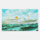 Vintage ocean liner illustration showing Norwegian American Line's transatlantic passenger ship ss Bergensfjord at Sea.