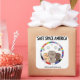 The size is perfect and the design has a softness with the beautiful flowers around the edges. The black lettering on the white background is sharp. It stands out beautifully. I love the Mixture of font styles as it catches the eye.