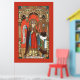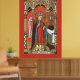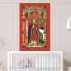 St. Alphonsus Maria de Liguori (1696–1787) was an Italian nobleman, a lawyer turned priest, prolific writer, founder of the Redemptorists, Bishop, and Doctor of the Church. Here, in a chapel setting against a red brick background, he stands wearing his Bishop’s robes—mitre and cope—and carrying his crosier or pastoral staff. His right hand is raised in blessing. In art, when portrayed at an angle to the viewer as in this image, he has a noticeably humped back and a chin tucked into his chest. In May 1768, he had been struck with a terrible attack of rheumatic fever that lasted over a year and left him permanently crippled until his death some twenty years later. For this reason, he is patron saint of rheumatoid arthritics and the aged ill. + Feast: August 1 + Image Credit (SAU 039): Antique image of St. Alphonsus Liguori from a late 19th-century devotional print in chromolithography, originally published by Socièté de St. Augustin, Bruges, Belgium, from the designer’s private collection of religious ephemera.