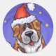 Animal Parade Festive Saint Bernard Dog Christmas Gifts and Accessories brought to you by Imagine That! Design features our original art of a cute brown and white St. Bernard dog decked out for the holidays with a bright red Santa hat on his head and a festive green holly wreath on his butt with a cheery red bow. On many of the holiday cards and gifts the fun St. Bernard dog stands in a snowy landscape with with a textured starry blue night sky painted by Traci Van Wagoner. This fun pet art is perfect for St. Bernard dog lovers and humourous animal art lovers of all ages. Join the Animal Parade and bring a smile to the face of someone you love with a gift of our festive St. Bernard dog dressed up for the holidays. Woof!