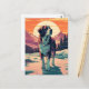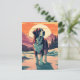St.Bernard dog in the snowy forest during sunset Postcard