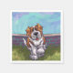 Animal Parade Cute St. Bernard Dog Cocktail Napkin created by Imagine That! Design features our cute tan and white dog character standing in a grassy yard with a red brick fence, a textured blue sky and a playful wavy purple border painted by our talented children's book artist, Traci Van Wagoner. The fun pup stands in play position with one paw raised. This fun pet art is perfect for St. Bernard dog lovers and humourous animal art lovers of all ages. On many of our whimsical St. Bernard doggy products you'll find this cute puppy coming and going with the playful Saint Bernard dog's head on one side and the funny dog's tail on the other. Join the Animal Parade and bring a smile to the face of someone you love with a gift of our cute St. Bernard dog. Woof!
