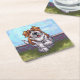 Animal Parade Cute St. Bernard Dog Paper Coaster created by Imagine That! Design features our cute tan and white dog character standing in a grassy yard with a red brick fence, a textured blue sky and a playful wavy purple border painted by our talented children's book artist, Traci Van Wagoner. The fun pup stands in play position with one paw raised. This fun pet art is perfect for St. Bernard dog lovers and humourous animal art lovers of all ages. On many of our whimsical St. Bernard doggy products you'll find this cute puppy coming and going with the playful Saint Bernard dog's head on one side and the funny dog's tail on the other. Join the Animal Parade and bring a smile to the face of someone you love with a gift of our cute St. Bernard dog. Woof!