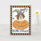 Send Halloween greetings with this card of a cute Saint Bernard puppy witch in a smiling Jack-o-Lantern. Great for kids of all ages who love Saints and Halloween. Have a Happy HOWL-oween!