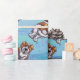 Saint Bernard Dog Heads and Tails Pattern wrapping paper feature our original art by our talented children’s illustrator of a fun St Bernard from the front and from the back in a fun seamless pattern on a textured blue background.