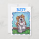 Animal Parade Playful St. Bernard dog Customisable RSVP Cards brought to you by Imagine That! Design features our cute brown and white St. Bernard dog with his paw lifted ready to play in the grassy backyard with a beautiful blue textured sky. You’ll find this fun St. Bernard dog painted by our talented children’s illustrator, Traci Van Wagoner, on coordinating invitations, cards, party favours and much more. Much of our fun party gear shows both sides of the cute St. Bernard dog, head and butt, in colourful, fun art that will bring a smile to the face of any animal or St. Bernard dog lover. Anyone who loves dogs will be delighted to use this playful pup for their fun animal themed party. On the invitation, you’ll find the funny St. Bernard dog coming and going with this fun artwork of the St. Bernard dog's head on the front and the funny St. Bernard dog’s tail on the back with all the customisable party information. Party on with this adorable St. Bernard dog! Woof!