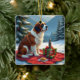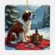 St. Bernard Winter Picnic Christmas Painting Ceramic Ornament