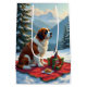 A peaceful painting of a St. Bernard enjoying a winter picnic in the snow. This festive outdoor scene radiates warmth and companionship — a perfect holiday artwork for dog lovers.