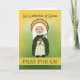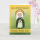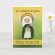 St. Catherine of Siena is a well loved Catholic saint. The image is a simple drawing with a halo around her head. She is holding a lily and book. She is wearing a green cloak and a white veil. A crown of thorns surrounds her head. Perfect card for Confirmation, First Holy Communion, Baptism or Feast day celebrations.