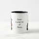The choice is yours whether to add a colourful background to this handsome mug or to leave it as is! + St. Catherine of Siena with Crucifix-Topped Heart is a modern colourized version of an antique woodcut from The Nuremberg Chronicle (Liber Chronicarum). Written by Hartmann Schedal, The Chronicle is an illustrated, encyclopaedic account of world history to the end of the 15th century (and beyond to the Last Judgment). Its content was derived from mythology, the Bible, and various Mediaeval Chronicles. It was published in the city of Nuremberg by Anton Koberger in July 1493 in Latin and, a few months later, in December in vernacular German. The Chronicle is especially noteworthy for its unprecedented use of illustrations: 645 original woodcuts were produced for its publication. While many woodcuts were reused more than once in the text with the captions simply changed, nevertheless, the volume boasts 1089 pictures in toto. Some copies have contemporary hand-coloured illustrations. + St. Catherine of Siena (1347-1380) was a lay Dominican or tertiary, a mystic and stigmatist, advisor to popes and politicians, and author and Doctor of the Church. Here, she is depicted in a Dominican nun’s habit and holds a crucifix-topped heart symbolising her ardent love for Christ crucified. + St. Catherine of Siena is a patron of the sick, nurses, and nursing services; firefighters and fire prevention; and Rome, Italy, and Europe. + Feast: April 29 + Image Credit (St. Catherine of Siena with Crucifix-Topped Heart): This colourized version of the Nuremberg woodcut is a Saints_Aplenty Exclusive (SAE).