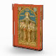 Antique NeoGothic image of St. Clare of Assisi and Her Spiritual Daughters from a late 19th century chromolithographic devotional print drawn by Baron Jean-Baptiste Bethune (1821-1894) and published by the Socièté de St. Augustin, Bruges, Belgium, in the designer’s private collection of religious ephemera. + Reading from left to right, the nuns beneath St. Clare’s mantle are St. Hyacintha of Mariscotti, St. Agnes of Assisi, St. Colette of Corbie, St. Catherine of Bologna, St. Eustochia Calafato, and Bl. Isabella of France. St. Eustochia was canonised in 1988, well after the original publication of this image; hence, the designation “Bl.” (“Blessed”) on the scroll in the lower panel. + Feast of St. Clare: August 11