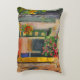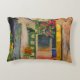 This decorative accent pillow features an adaptation of a fine art painting of a small alley in St. Croix, Virgin Islands, by the American artist, Anna Unterman. The bright, sunny street scene is a riot of colours. There is a red, pink and magenta bougainvillea vine over the archway as well as orange flame vines and other green shrubs and leaves. The colourful buildings are yellow, gold, blue and green. Reprinted with permission from the estate of Anna Unterman. All rights reserved.