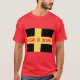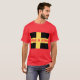 I give wanted to give this a 4 instead of a 5 because these Basic DARK T0shirts run unexpectedly SLIM or Narrow. Which is great if you do not have a potbelly, but I have a paunch. It isn't the shirt's fault that I've got a beer belly. The design and shirt itself is a quality cotton shirt. The color is more of a deep purple, but still a very pretty color. The Basic DARK T-shirts run a bit SLIMMER than the Basic Ts. The neck is a fraction narrower (or seems to be narrower) also. I'm a paunchy middle-aged woman and my neck is 12 inches (31cm) thick and the neckline fell about the same as in the photo of the man, and I had the desire to tug it a bit. So if you're a thick necked man or like loose shirts, be aware these are slimmer shirts. Once I get rid of my lockdown paunch it'll look great. The shirt washed well in cold water with no apparent bleeding. We don't have a dryer, so it hung dry. Did not shrink. Love the colors and the design. The design looks smaller on my shirt than it does on the model on-line. But still, it looks good on the shirt. The printing looks as it does on the model, just the size seems fractionally smaller. Washed garment in cold water, hung dry and design appeared unaffected.