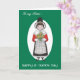A St David's Day greeting card for a Sister, with a little girl wearing the national costume and holding a bunch of daffodils. From a handpainted illustration by Judy Adamson.