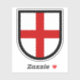 Our St. George’s Shield is based on the English Flag of St. George (q.v.). It is blazoned with a red cross on a white field. The symbol is an old one. In the Middle Ages, representations of Saint George as a crusader knight depicted him bearing such shields with red-on-white crosses. + Image Credit (St. George's Shield): Saints_Aplenty.