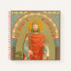 In this image done in the Beuron style of Benedictine art, St. Henry II (972-1024), Holy Roman Emperor, wears Imperial regalia—a crown, an ermine-lined vermillion red cloak over a teal robe, and carries a sceptre and orb symbolic of his temporal power. His crown, the Reichskrone, or Imperial Crown of the Holy Roman Empire, is a distinctive one comprised of eight hinged arch-shaped metal plates surmounted by a cross in the front with a high hoop connecting the front of the crown to its back. A layman and not a consecrated religious, nevertheless, St. Henry was known for his personal holiness practicing Benedictine values as an Oblate. St. Henry is patron saint of Benedictine Oblates as well as people rejected by religious orders, the physically challenged, and childless couples. + Feast: July 13 + Image Credit (BBS 10): Antique image of St. Henry II, Emperor, OSB [Order of St. Benedict], originally published in chromolithography by B. Kühlen, Mönchengladbach, Germany (Series Benedictina, Schola art. Beuron., unnumbered), late 19th-early 20th century, from the designer’s private collection of religious ephemera.